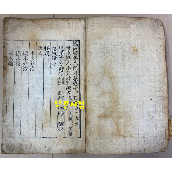 19권. 이 책을 쓰게 된 동기는 저자가 병에 걸려 여러 의서를 살펴보고서 책은 많은데 일목요연하게 요령을 삼을 만한 책이 없어 의학에 입문하기 어려움을 느낀 데서 시작되었다.