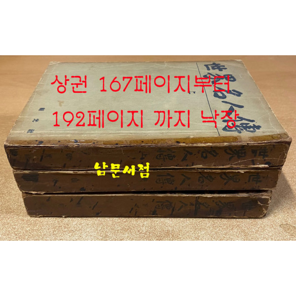 상권 167~192페이지 낙장 하권은 책이 전체적으로 얼룩많음 하권 판권 사진참조