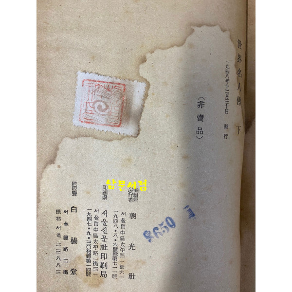 상권 중간에 낙장 있고 하권은 책이 전체적으로 얼룩많음 하권 판권 사진참조