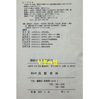 • 조선1930년대연구 일본어표기 / 고려서림 / 1987년 복각발행