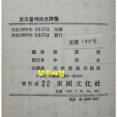 보오들레에르시집 / 동국문화사 / 1965년 초판 / 254페이지 요약정보 및 구매