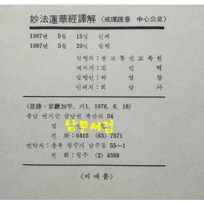 • 묘법연화경역해 - 계환소를 중심으로 / 김인역 / 불교통신교육원 / 1987년 초판 / 642페이지