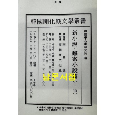 • 한국개화기문학총서 신소설 번안소설 1~10 전10권 완질 영인본 / 아세아문화사 / 1978년 영인