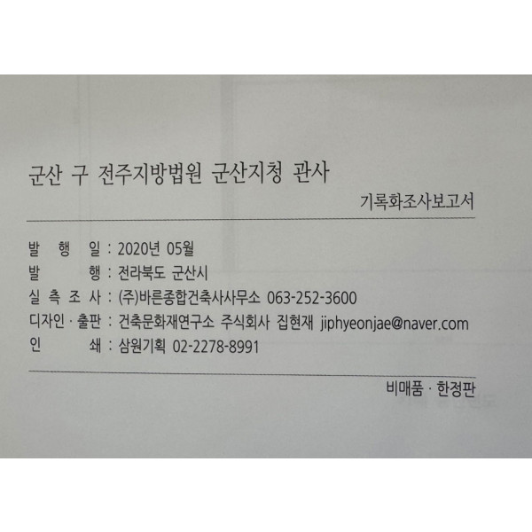 군산 구 남조선전기주식회사 기록화조사보고서 cd포함 / 군산시 / 2020년 / 341페이지
